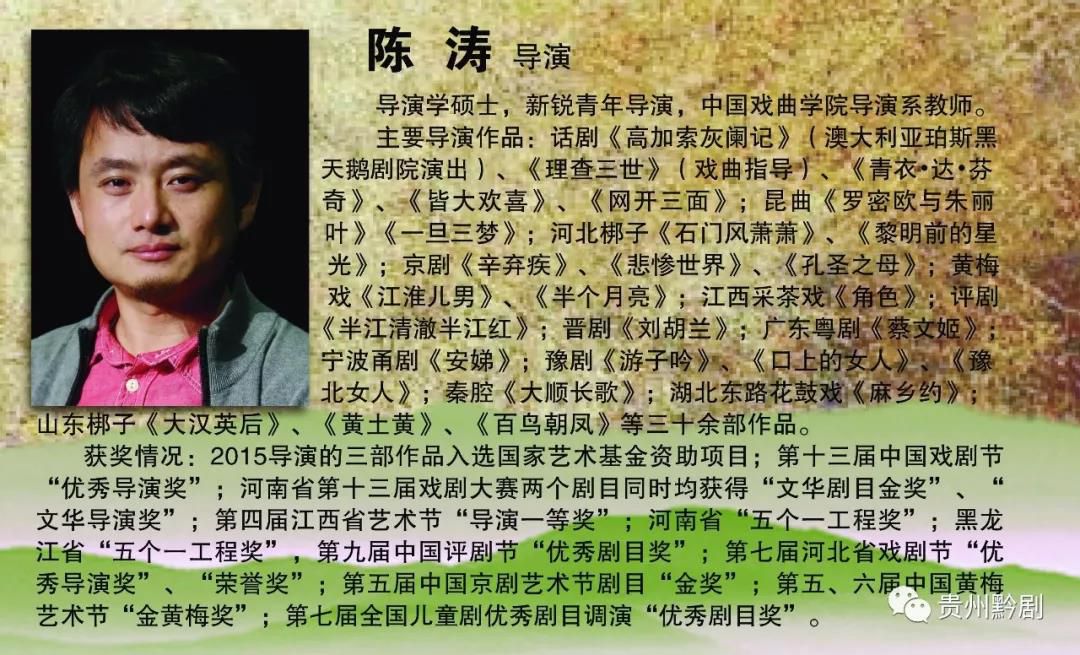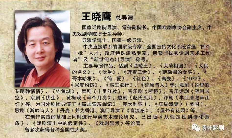 【朱宏】:貴州省黔劇院院長、國家一級演員、國家級非物質文化遺產傳承人、享受國務院政府特殊津貼、文化部優秀專家、貴州省“四個一批”人才、貴州省“德藝雙馨”文藝工作者,多次榮獲貴州省政府文藝獎一等獎、“五個一”工程獎等獎項,多次代表中國出訪澳大利亞、新西蘭、加拿大、泰國等國家文化交流演出,曾在貴州電視臺《出彩中國人》等大型綜藝節目中擔任評委,在大型電視情景喜劇《歡樂黔劇》、《華夏醫家樂》、黔劇《貞女》、《大學生村官》、《九驛圖》、《湄水長歌》、《天渠》等劇中擔任主演。