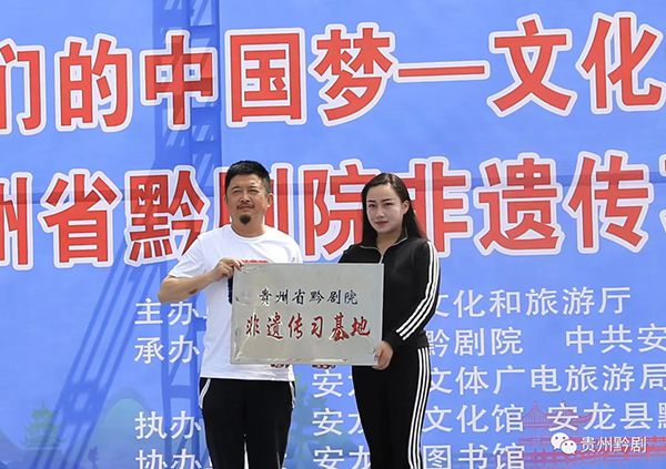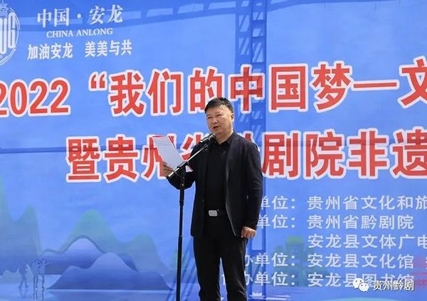 出掛牌儀式活動的領導有:貴州省黔劇院院長、國家級非遺傳承人、國家一級演員朱宏,還有貴州省黔劇院副院長、國家一級演員陳林,安龍縣人大常委會主任羅錦,安龍縣政協主席鄭少典,縣人民政府副縣長徐妤,縣政協副主席黃顯曠,安龍縣宣傳部副部長、縣文體廣電旅游局局長、縣融媒體中心主任陳昱波,安龍縣文化館館長晏順麗。 安龍縣人大常委會主任羅錦,貴州省黔劇院院長朱宏分別上臺致辭,貴州省黔劇院副院長陳林與安龍縣文化館館長晏順麗共同完成了授牌儀式。