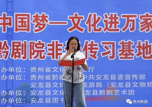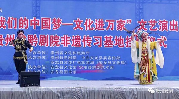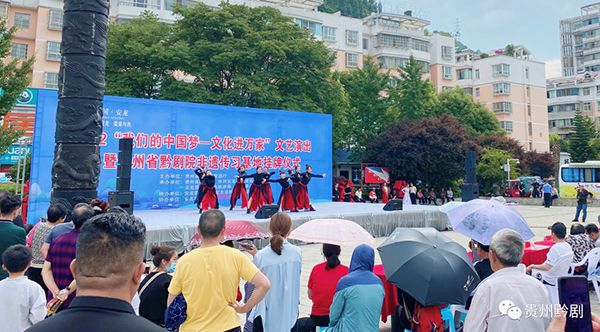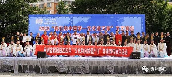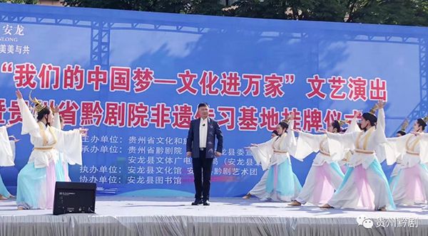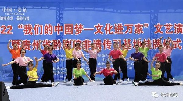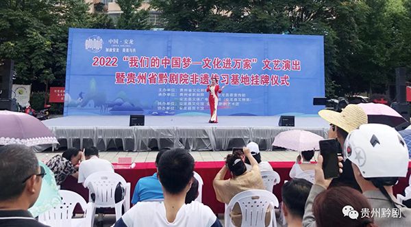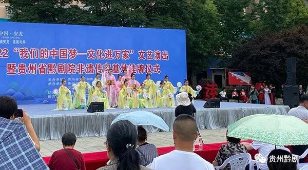 6月17日下午三點,貴州省黔劇院2022年“我們的中國夢——文化進萬家”文藝演出暨貴州省黔劇院非遺傳習基地掛牌儀式在安龍縣金荷銘都廣場舉行。