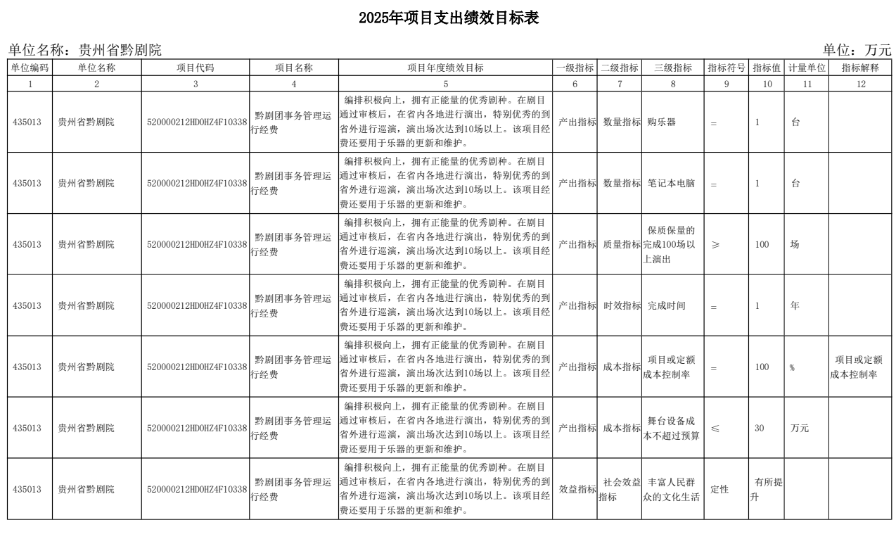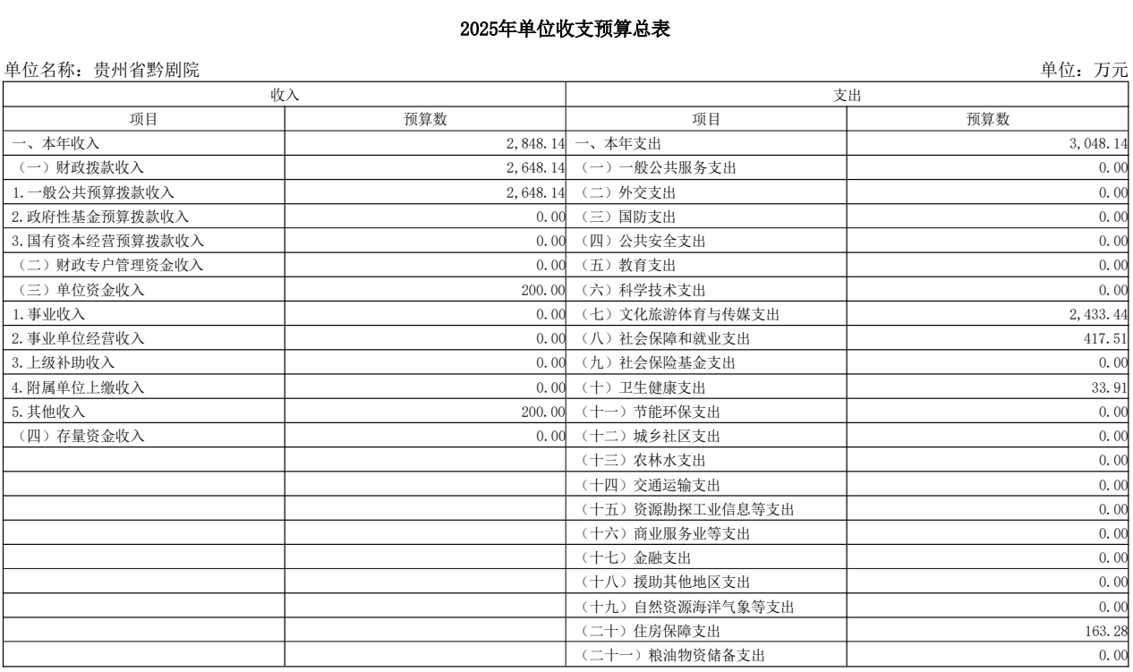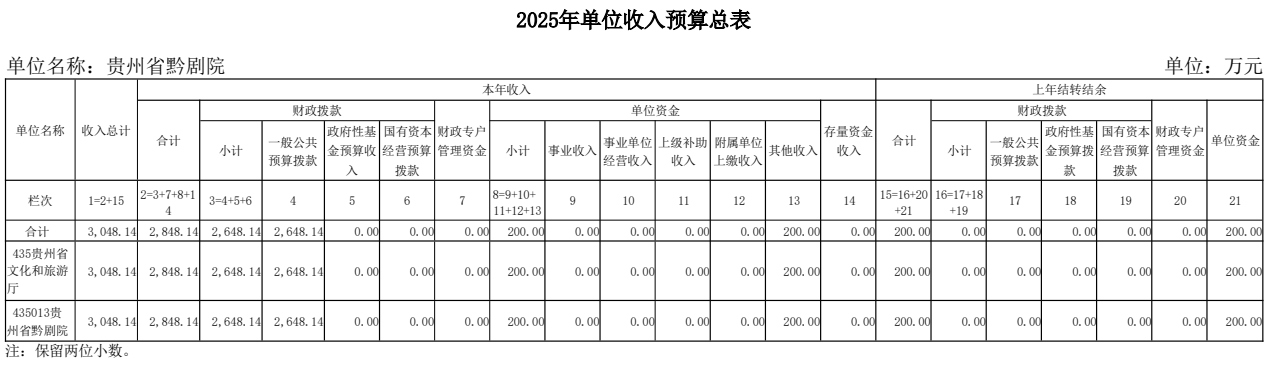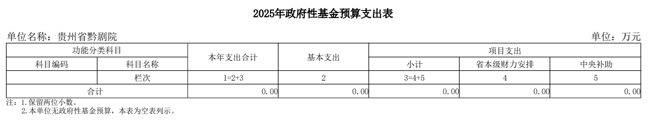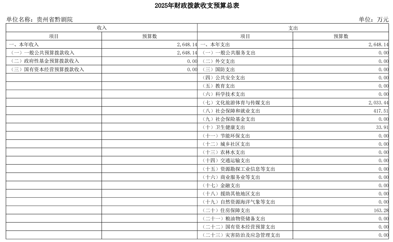 貴州省黔劇院2025年單位預算公開信息