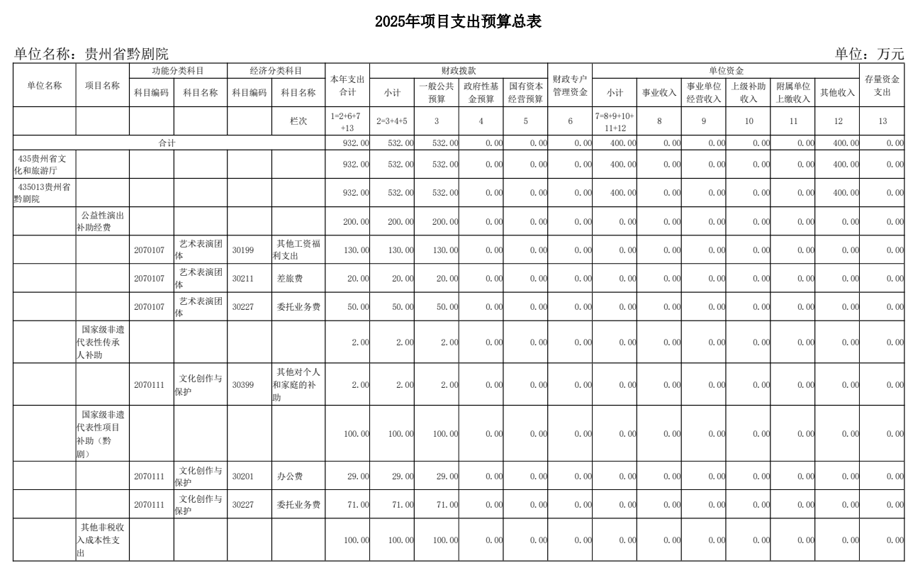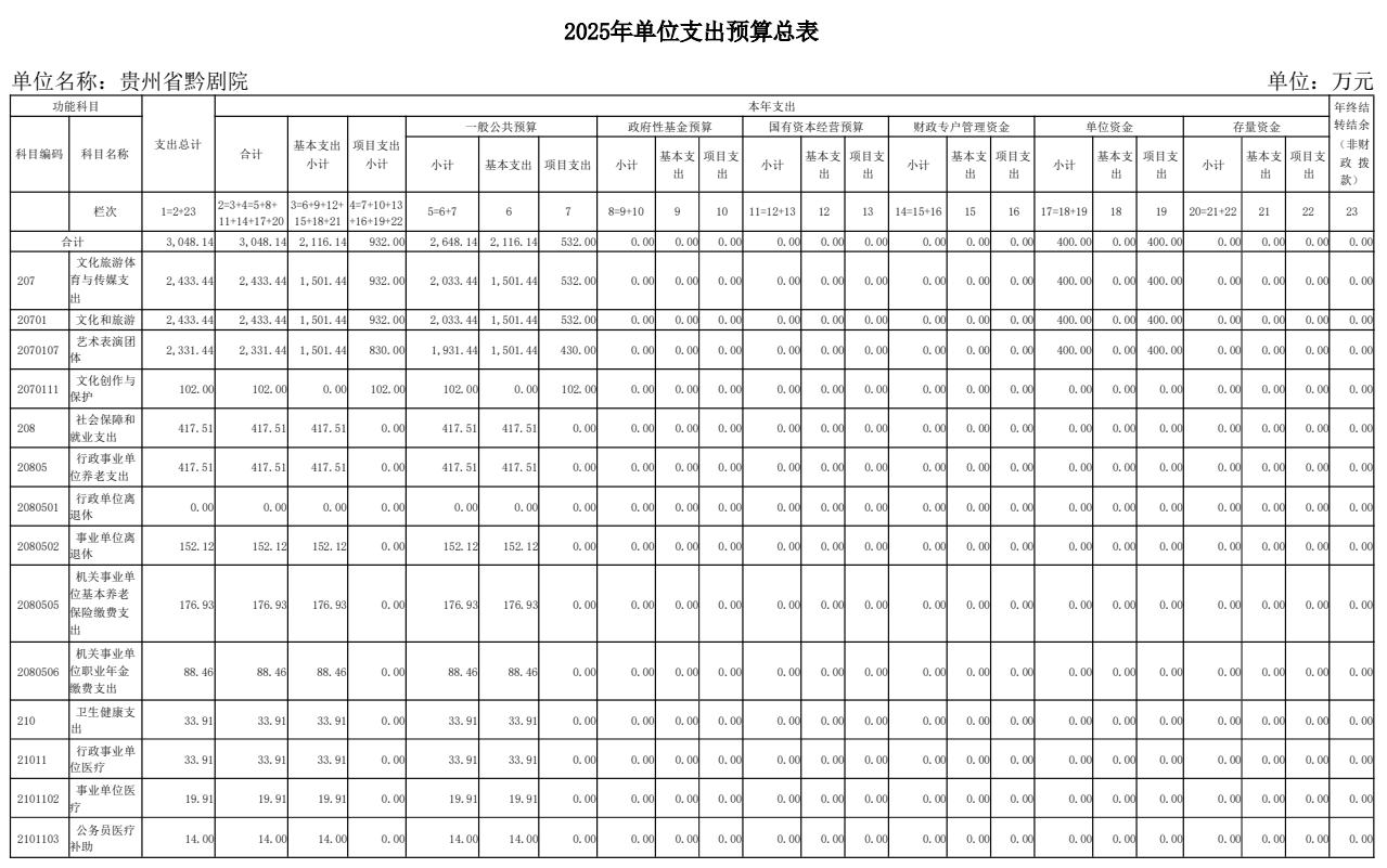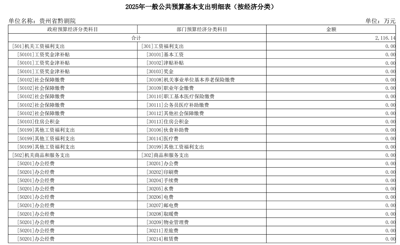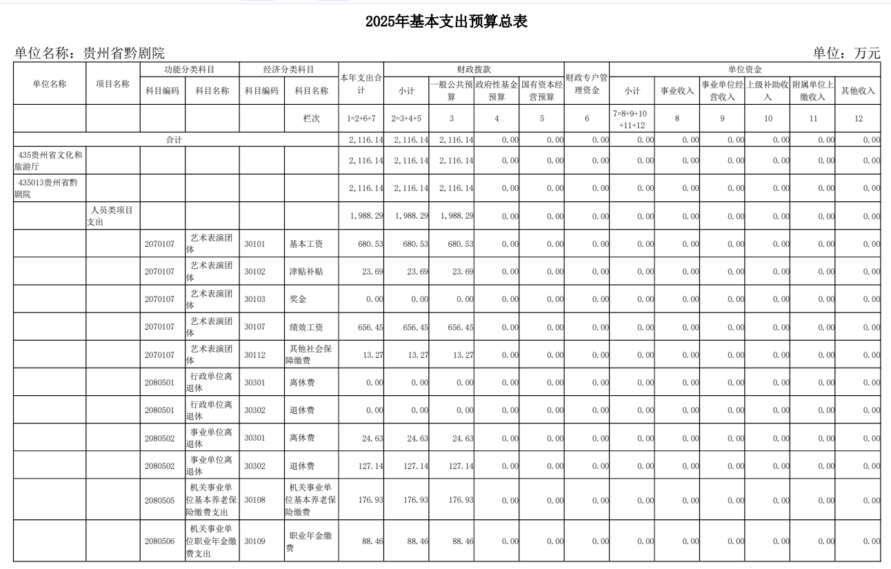 貴州省黔劇院2025年單位預算公開信息