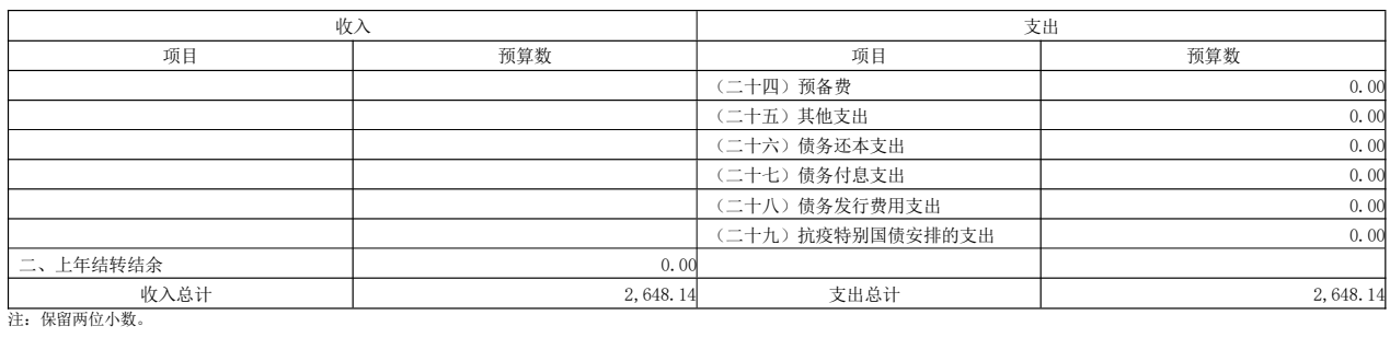 2025年單位財政撥款收入預算總額2,648.14萬元,其中:本 年收入2,648.14萬元,上年結轉結余0.00萬元。本年收入中:一 般公共預算撥款收入2,648.14萬元,政府性基金預算撥款收入 0.00萬元,國有資本經營預算撥款收入0.00萬元。