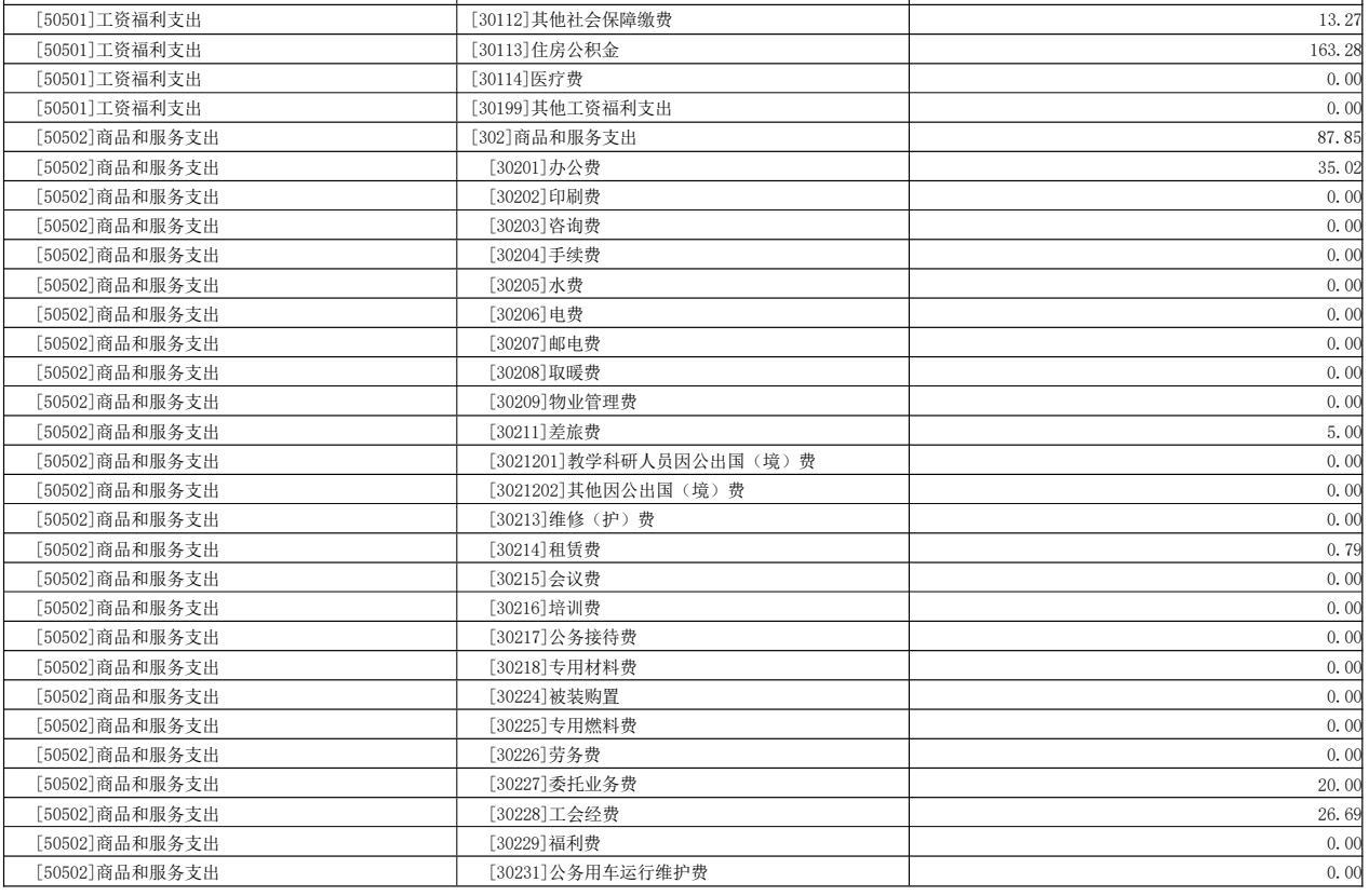 2025年單位基本支出預算總額為2,116.14萬元,其中:人員 經費1,988.29萬元,公用經費127.85萬元。人員經費包含基本工 資680.53萬元、津貼補貼23.69萬元、績效工資656.45萬元、機關 事業單位基本養老保險繳費176.93萬元、職業年金繳費88.46萬 元、職工基本醫療保險繳費19.91萬元、公務員醫療補助繳費 14.00萬元、其他社會保障繳費13.27萬元、住房公積金163.28萬 元、離休費24.63萬元、退休費127.14萬元;公用經費包含職工基 本醫療保險繳費40.00萬元、辦公費35.02萬元、差旅費5.00萬 元、租賃費0.79萬元、委托業務費20.00萬元、工會經費26.69萬 元、其他商品和服務支出0.35萬元。