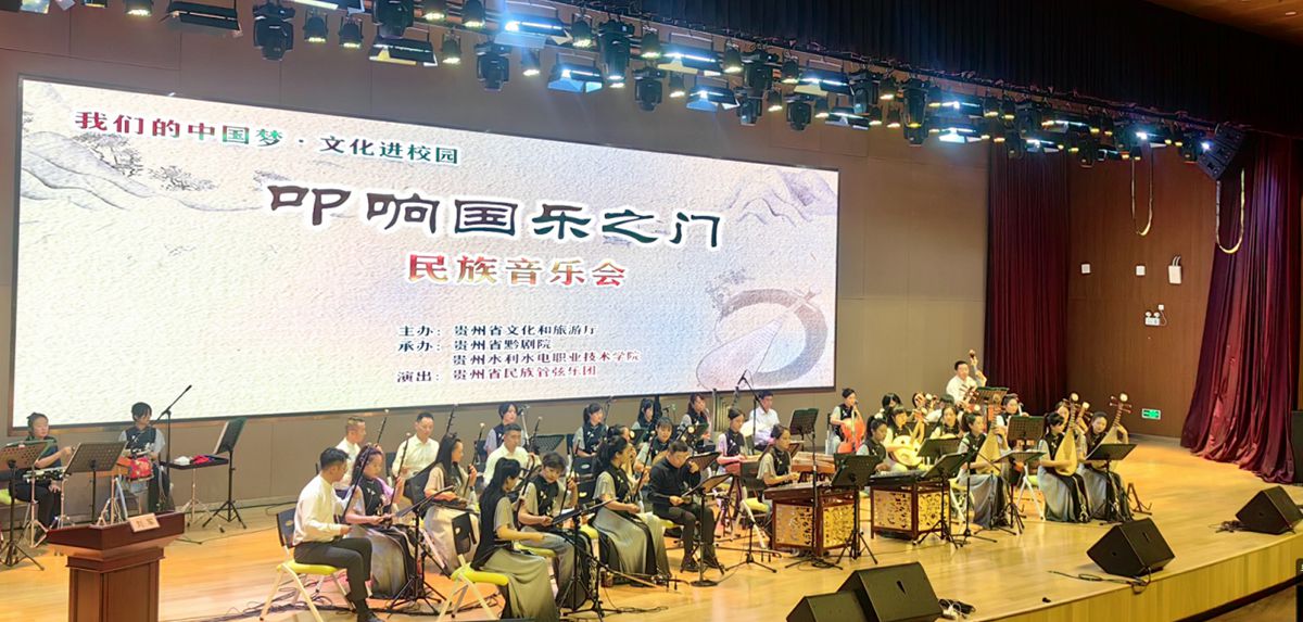 10月25日,貴州省黔劇院、貴州省民族管弦樂團“叩響國樂之門”專場民族音樂會在貴州水利水電技術學院文淵館上演。