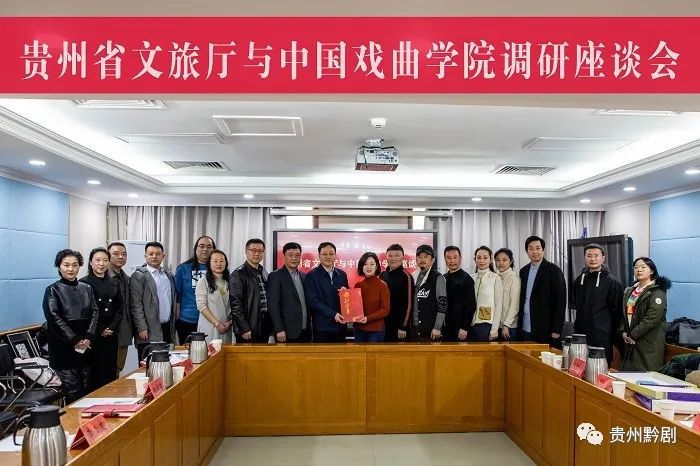參觀結束后,雙方圍繞積極推進戲曲傳承與發展工作,舞臺藝術創作、戲曲人才培養等多方面進行了座談并紛紛表達了對合作的美好期許。中國戲曲學院表示將一如既往發揮藝術院校特色優勢,積極為貴州文化發展服務,在現有良好合作基礎上,拓寬合作領域,為傳承中華優秀傳統文化貢獻力量。貴州省文化和旅游廳也將發揮優勢,在地方戲曲調查研究、師生參與藝術生產創作等方面為中國戲曲學院提供便利。