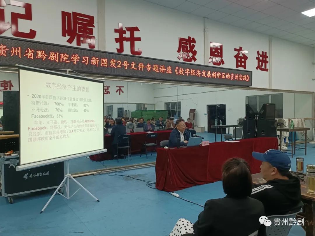 在全省上下深入學習貫徹國發〔2022〕2號文件精神之際,貴州省黔劇院黨委高度重視國發〔2022〕2號文件精神的學習宣傳、貫徹落實工作,省黔劇院緊扣“四區一高地”戰略定位,對如何“加快構建以數字經濟為引領的現代產業體系”等內容,邀請了貴州財經大學王作功教授于4月13日上午10點為全院職工進行了專業解讀。