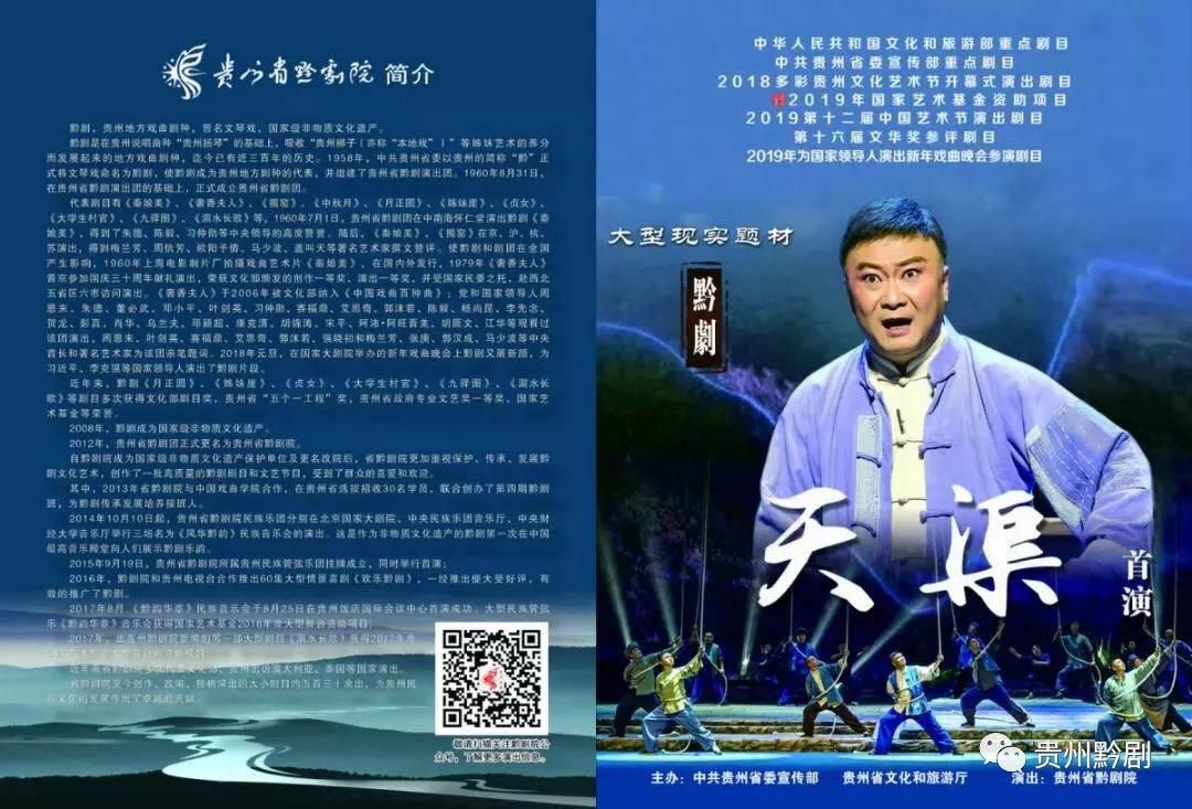 黔劇《天渠》是2019年度國家藝術基金大型舞臺劇資助項目,文化和旅游部重點劇目,貴州十三五規劃重點打造劇目,第十二屆中國藝術節、第十六屆文華大獎參評劇目,并在國家大劇院2019新年戲曲晚會上為習近平等國家領導人演出《天渠》片段。