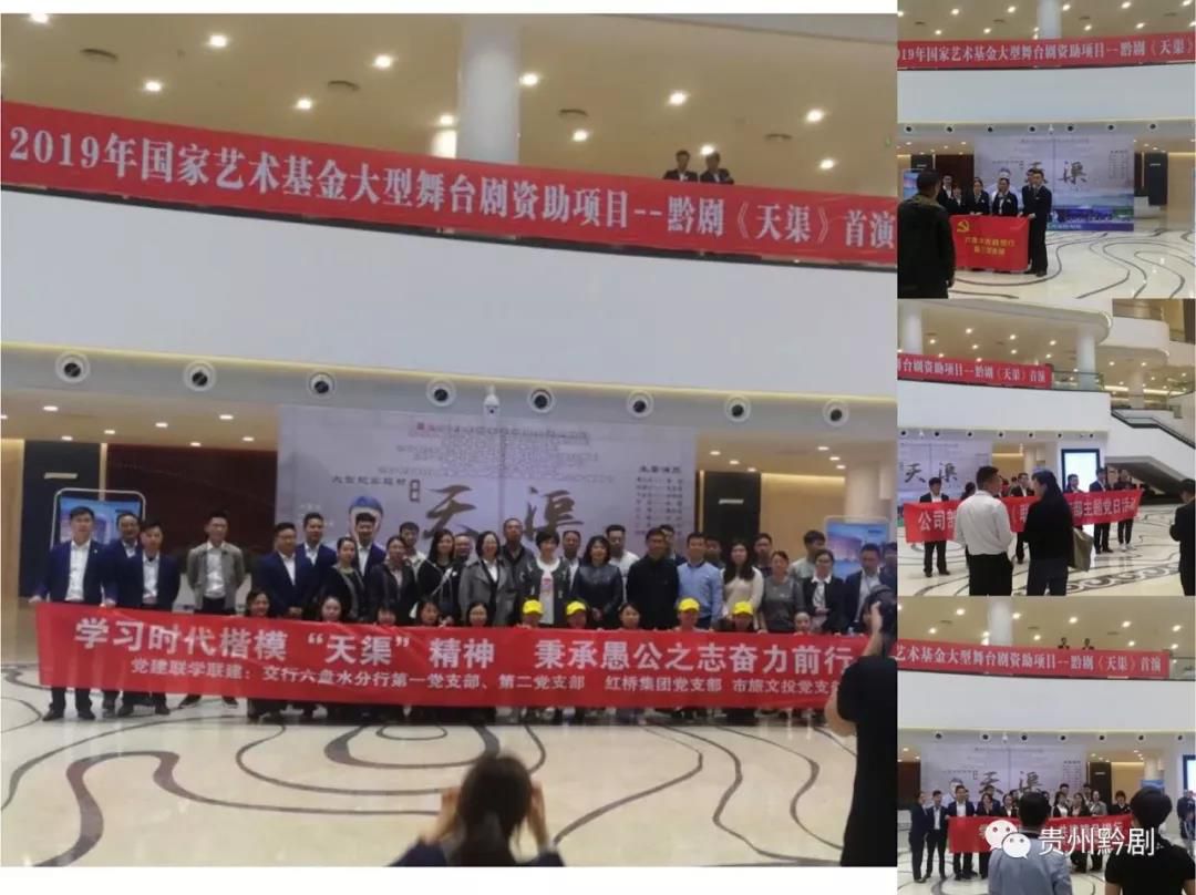 黔劇《天渠》是以中宣部授予“時代楷模”榮譽稱號的全國道德模范黃大發為原型而創作的大型現實題材劇目,該劇成功塑造了黃大發先進人物形象,反映了我省以黃大發為代表的新時代共產黨員不忘初心、牢記使命、決戰脫貧攻堅的感人故事,彰顯了新時代的貴州精神。首演當天得到了當地黨委、政府、社會各界和媒體的廣泛關注,并且很多單位的黨支部借《天渠》首演機會紛紛組織黨員干部前來觀看學習,開展主題黨日活動。