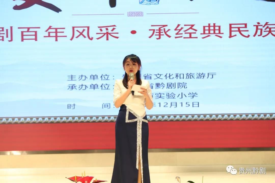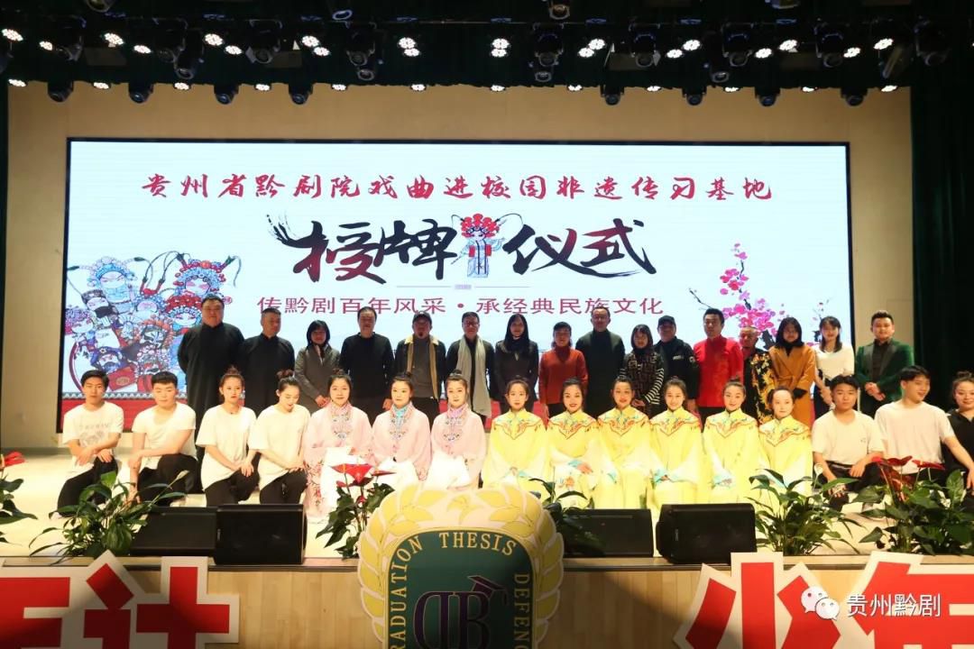 “傳黔劇百年風采?承經典民族文化”貴州省黔劇院戲曲進校園非遺傳習基地授牌儀式12月15日下午在貴陽市實驗小學舉行。貴州省黔劇院黨支部書記張亞西、貴陽市實驗小學黨支部書記、校長鐘海燕、貴州省黔劇院副院長陳林等相關領導同貴陽市實驗小學師生代表一同參加了授牌儀式并觀看文藝表演。貴州省黔劇院黨支部書記張亞西、貴陽市實驗小學黨支部書記、校長鐘海燕分別為活動致辭, 鐘校長強調了戲曲認識、了解戲曲的重要性,希望師生們以活動為切入點,推動優秀傳統文化在青少年中傳承弘揚。