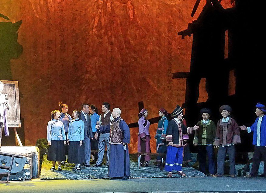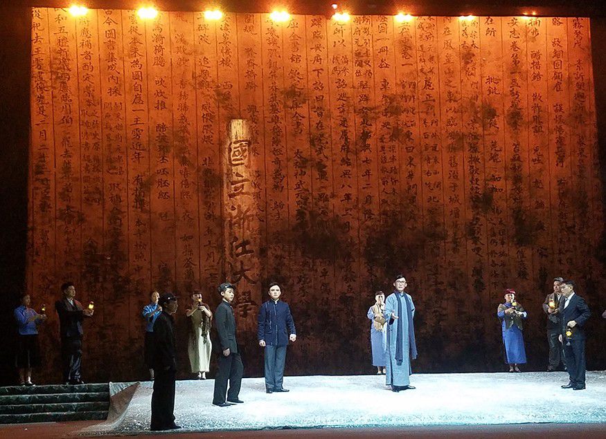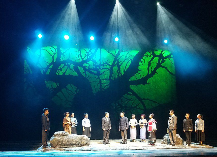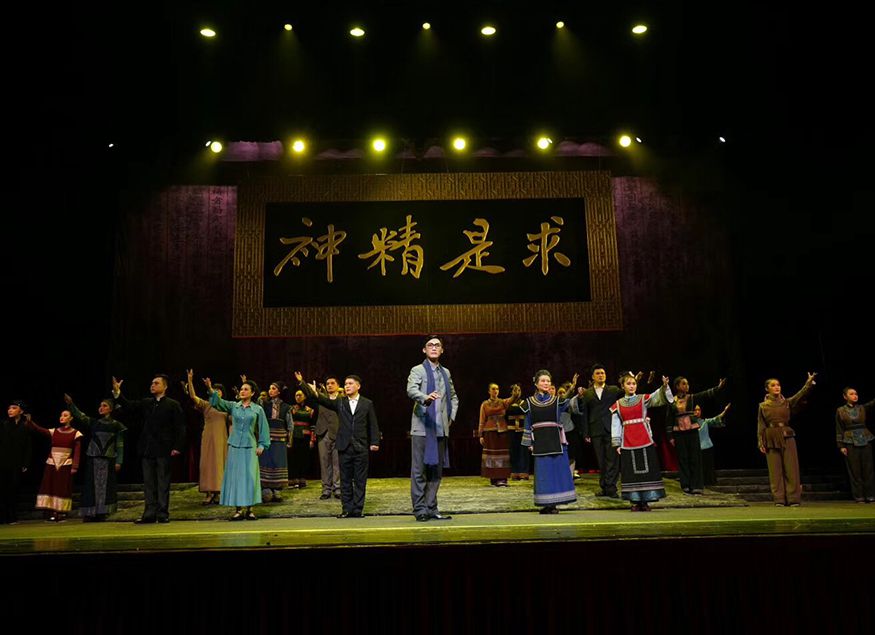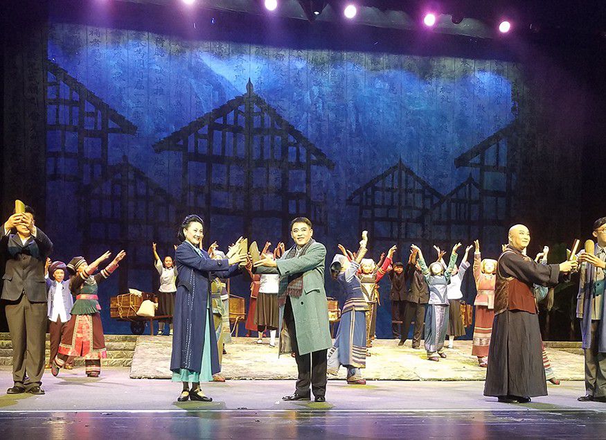 此次《湄水長歌》中的演員,黔劇院的老中青三代演員全上陣。中國很多大型的院團都是以女角為主的戲,而《湄水長歌》則是兩個男角的戲,一個是時任浙江大學的校長竺可楨、一位是時任湄潭縣長嚴溥泉。這個縣長留過洋,他懂得教育興邦、教育救國,所以在浙江大學四處無援的情況下,他主動寫信給竺可楨邀請浙大到湄潭辦學。在他的努力下,湄潭老百姓也很支持,把當地的文教館、文廟、救濟院等等大約有三百多間房屋全部提供給浙江大學辦學,所以浙大能夠在湄潭落戶,生存發展到現在成為國內有名的大學,跟當年的湄潭百姓、縣長的努力是分不開的。