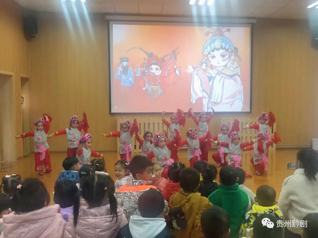 演出中,黔劇院青年演員們展示了黔劇基本功,一招一式道出了戲曲的靈魂;幼兒園學生表演的戲曲《賣水》生動、靈巧;木偶表演《游園驚夢》用小朋友喜歡的形式再現了戲曲的魅力;雙人舞《扇緣》將曼妙的舞姿和戲曲表演中常用的團扇相融合,韻味十足。兒童舞蹈《小小芝麻官》、魔術表演等精彩節目紛紛上演,黔劇戲曲動漫《打瓜緣》的播放,將演出活動推向高潮,惟妙惟肖的戲曲人物形象,深受孩子們喜歡。