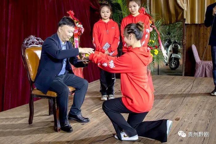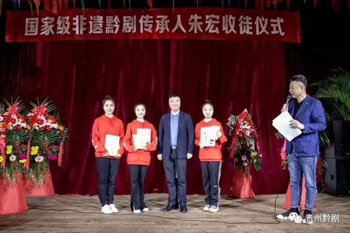 為更好地弘揚優秀民族文化,培育黔劇新人,5月27日,國家級非遺黔劇傳承人朱宏在貴陽舉行了收徒儀式。朱宏院長在喜收七位高徒之后,再次將楊影、劉樊晨、駱曼菁三位青年黔劇演員收入門下,為黔劇大家庭增添了年輕力量,讓新時代的黔劇表演人才加入到了黔劇的傳承發展中來。