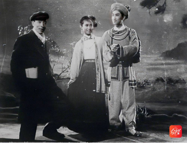 孫瑜導演與娘美扮演者劉玉珍、珠郎扮演者吳家林合影
