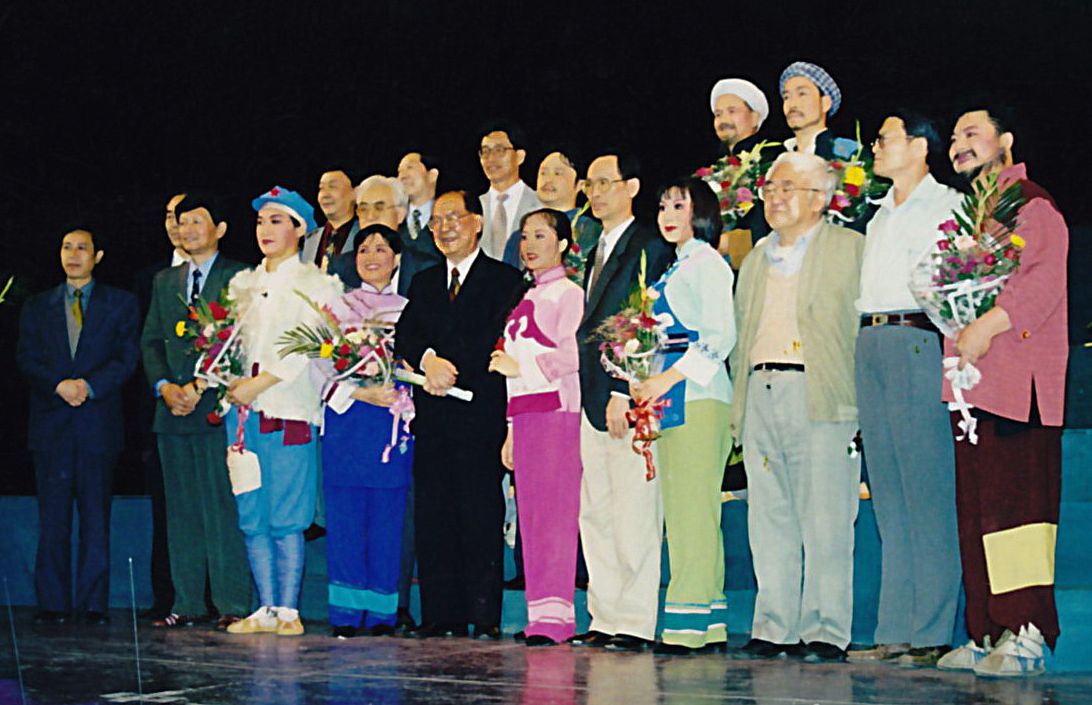 1999年9月中秋,中國文聯主席周巍峙、文化部副部長潘震宙、專家曲六乙等接見《姊妹崖》演員和主創人員,并合影留念。 | |